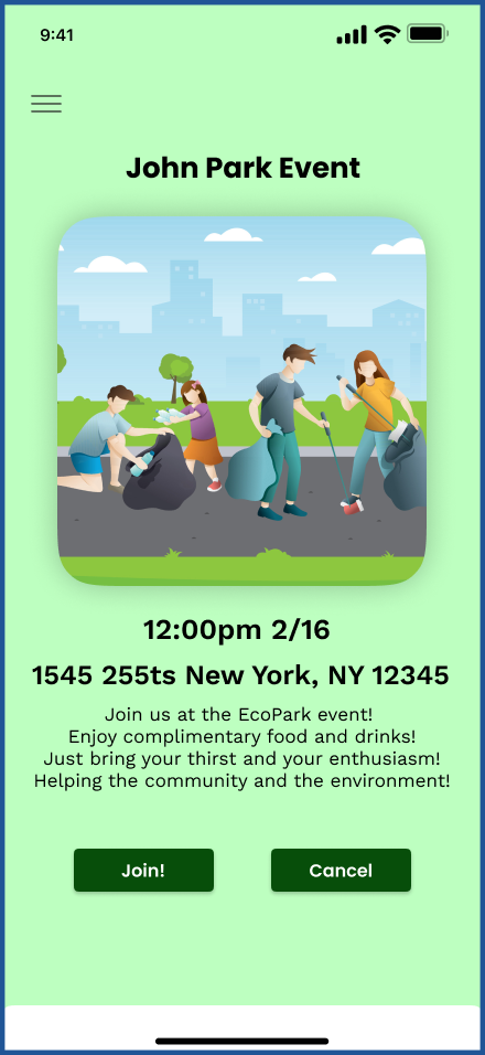 The app features a clean, user-friendly interface with a map-based dashboard for locating clean-up events, an event calendar for scheduling, and a homepage showcasing upcoming events and tutorials. It also allows users to invite friends who share an environmental consciousness, fostering a sense of community and collective action. The primary focus is on cleaning up neighborhood parks, making the experience more engaging and social to encourage greater participation.